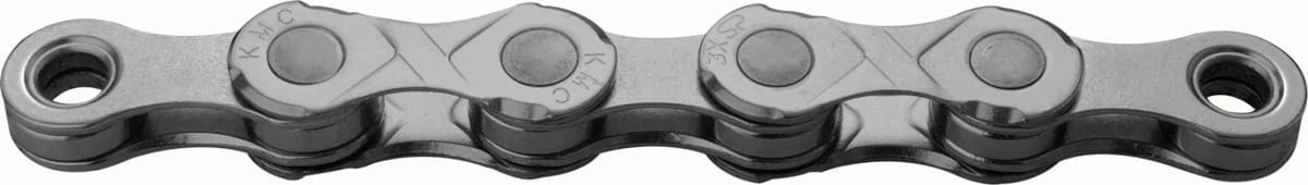 La chaîne e10 EPT, conçue pour les vélos électriques, possède des axes renforcés pour une plus grande résistance à la traction. Le pont en X continue d’offrir les performances habituelles de KMC en matière de changement de vitesse sous une charge accrue.